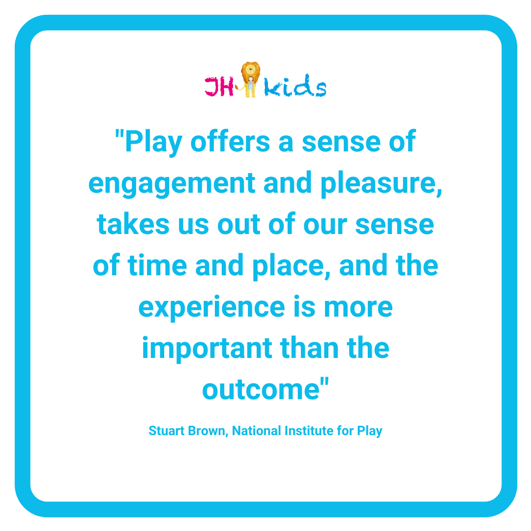 Brown says that play offers a sense of engagement and pleasure, takes us out of our sense of time and place, and the experience is more important than the outcome.